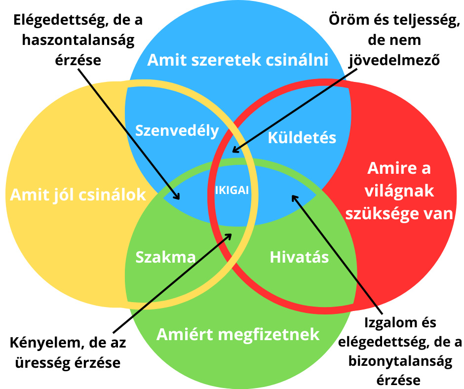 Az ikigai lényege, hogy megtaláld azt a területet, ahol az erősségeid, a szenvedélyeid vannak és amit a világ igényel, megfizet. Az ikigai keresése magában foglalja a személyes fejlődést, az önismeretet és a kitartást. Ez nemcsak egy cél, hanem egy életmód is.